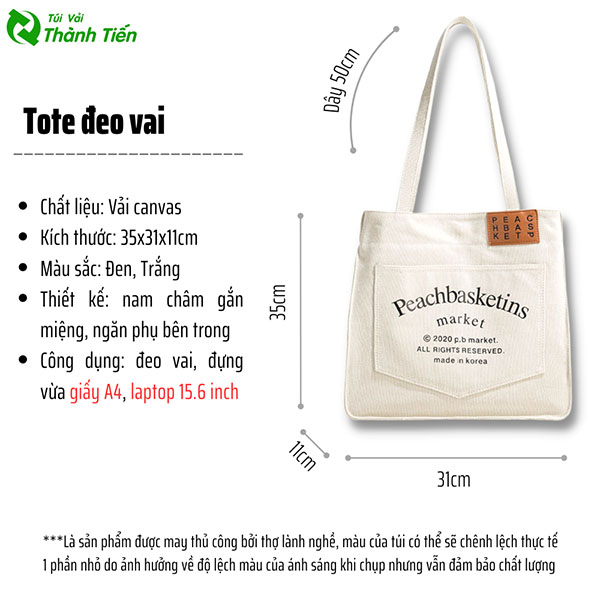 Kích thước túi tote đeo vai