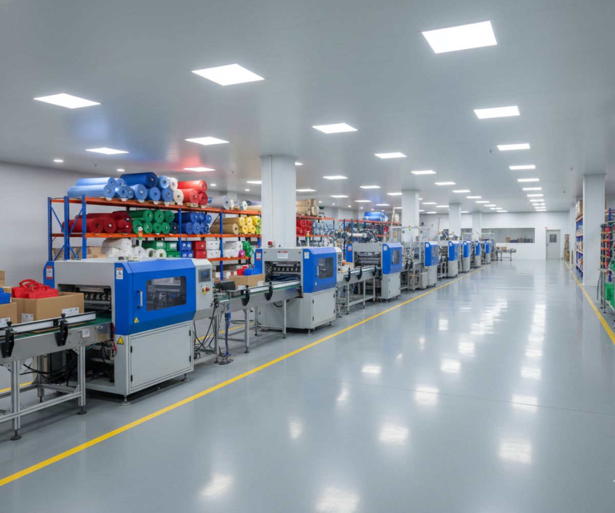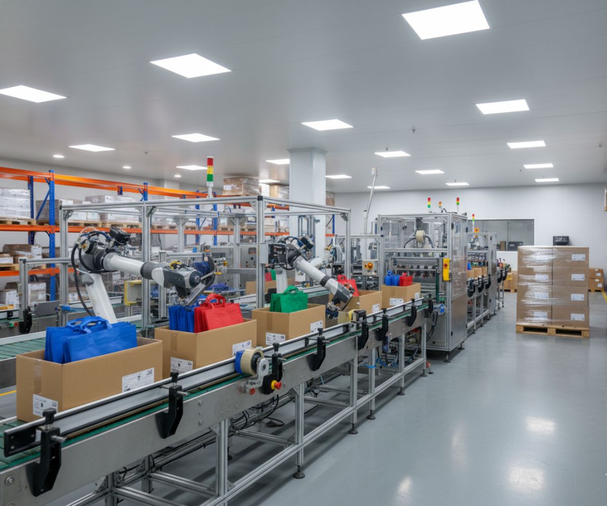Xưởng sản xuất của Túi Vải Thành Tiến được xây dựng với quy mô lớn, nằm tại các khu vực công nghiệp trọng điểm, đảm bảo khả năng vận chuyển và sản xuất linh hoạt. Nhà xưởng được trang bị dây chuyền máy móc hiện đại như máy may, máy cắt, máy in và máy đóng gói tự động. Quy trình sản xuất được tự động hóa cao, giúp giảm thiểu sai sót và nâng cao hiệu quả làm việc.