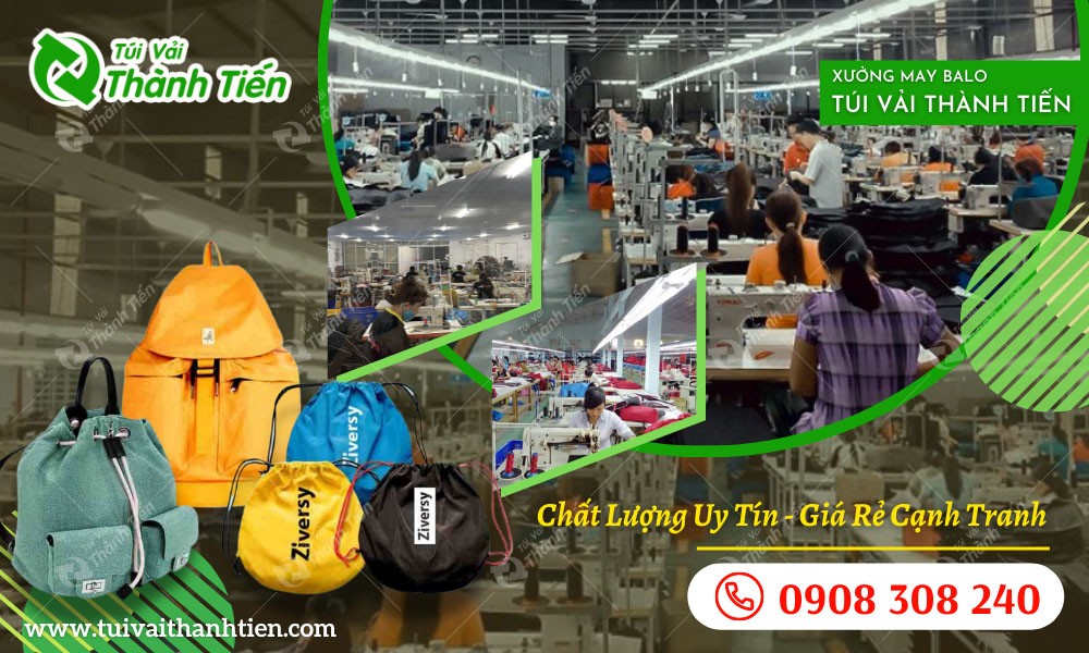 Xưởng may balo Túi Vải Thành Tiến có nhiều năm kinh nghiệm trong sản xuất và nhận in ấn logo thương hiệu lên các mẫu mã túi vải như túi vải không dệt, túi vải đay, túi vải tote,… balo dây rút, balo quà tặng, balo quảng cáo,… theo yêu cầu.