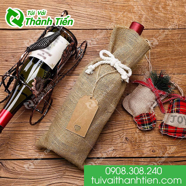 Túi vải đay dây rút đựng rượu tặng độ thẩm mỹ cao cho chai rượu