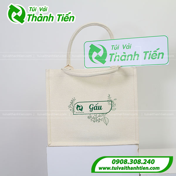 Phía dưới đây là thông tin chi tiết về mẫu túi đay quà tặng gia công in ấn theo yêu của doanh nghiệp hợp tác với xưởng sản xuất túi vải đay Thành Tiến.