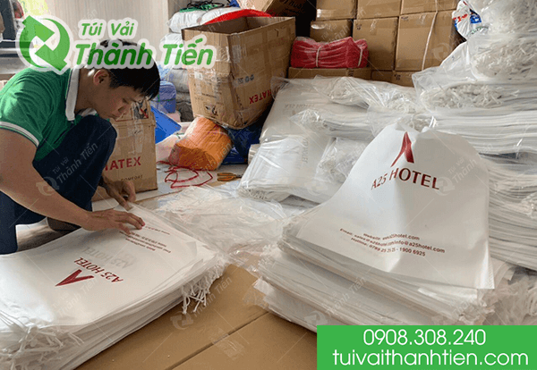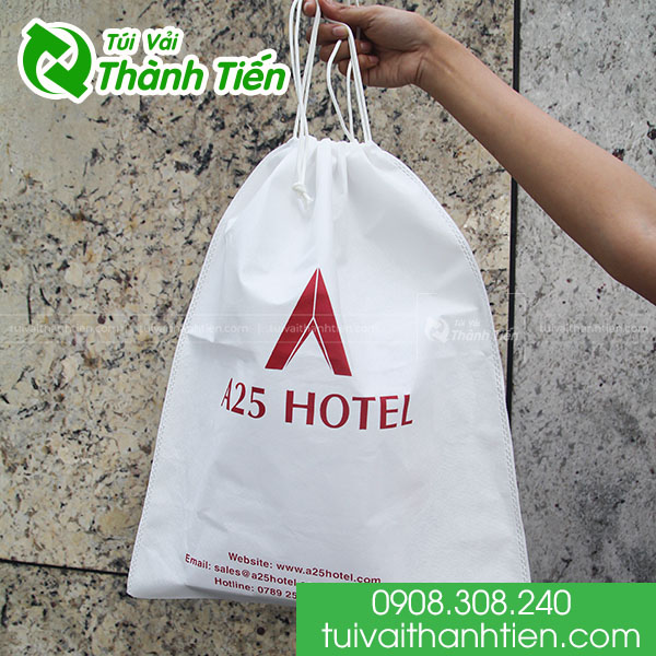 Dưới đây là một số mẫu túi vải không dệt dây rút được đặt hàng sản xuất, gia công và in ấn theo yêu cầu tại xưởng Túi Vải Thành Tiến chúng tôi. Mẫu túi thường được các doanh nghiệp kinh doanh mô hình nghỉ dưỡng resort, khách sạn ưa chuộng sử dụng phổ biến hiện nay.