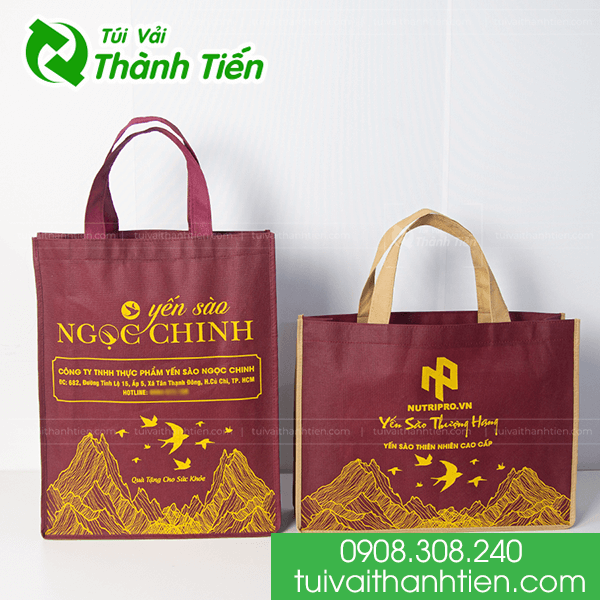 Túi vải không dệt đựng yến sào được sản xuất từ chất liệu vải dệt có tính chất mềm mịn và khả năng thấm hút, chịu trọng lượng và đàn hồi khá tốt.