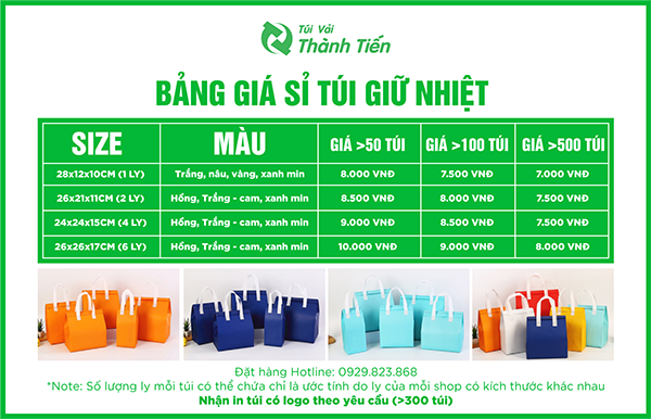 Bảng giá sản xuất sỉ túi giữ nhiệt trà sữa
