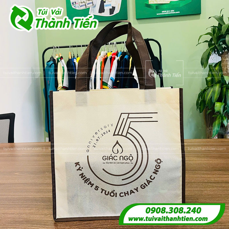 - Túi vải ép nhiệt: Loại túi đươc sản xuất bằng dây chuyền hiện đại, mọi công đoạn may đều thực hiện tự động bằng máy.