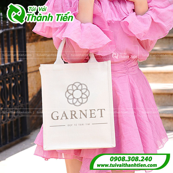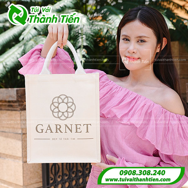 Những mẫu túi vải đay in logo, tên thương hiệu được sử dụng rộng rãi ở các sự kiện làm quà tặng khách hàng, doanh nghiệp. Tìm hiểu thông tin mẫu túi vải đay Garnet mà xưởng Túi Vải Thành Tiến đã sản xuất: