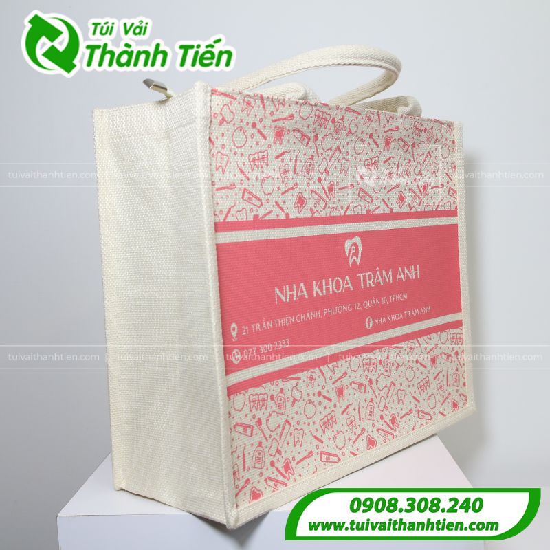 Khách hàng có nhu cầu đặt may mẫu túi vải linen Nha Khoa Trâm Anh tại xưởng Túi Vải Thành Tiến. Liên hệ chúng tôi để được nhân viên chúng tôi tư vấn thông qua: